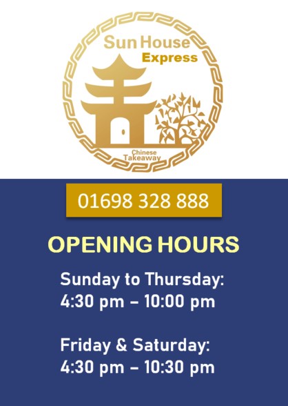 Sun House Express Chinese Takeaway serves variety of delicious Chinese dishes. We’re passionate about delivering hot, great tasting, freshly prepared Chinese food to our customers
